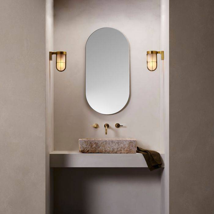 Par son aspect visuel, le luminaire mural Cabin Wall donne à tout intérieur une touche antique ou légèrement maritime. L'armature métallique aux couleurs antiques du laiton se blottit autour du corps en verre dépoli comme un panier de protection. La forme rappelle les lumières traditionnelles d'extérieur ou de bateau. Le verre dépoli garantit que la lumière de l'illuminant est émise sans éblouissement et diffusée doucement dans l'environnement.