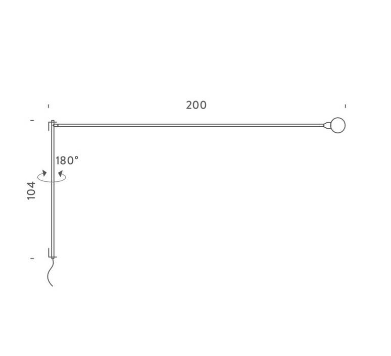 Le premier bras, accroché au mur, mesure 104cm de haut. Le second est d’une longueur de 200cm (sphère comprise). La source lumineuse LED E27, 8W, 2700 kelvins, 900 lumens, est incluse avec le luminaire. Dimmable, l’interrupteur se situe sur le câble noir de 3,2m équipé d’une prise électrique. Une version mini est également disponible sur notre site !