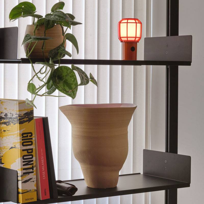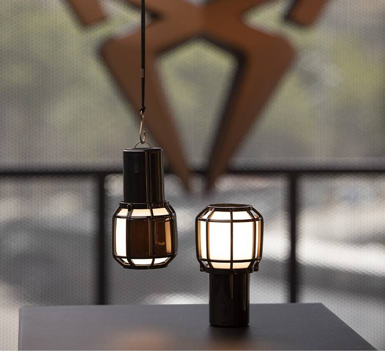 Avec sa cage en guise d'abat-jour, la lampe sans fil Chispa s'inspire des baladeuses utilisées sur les chantiers, dans les garages… Cette baladeuse domestique arbore un look décontracté et industriel. Elle se compose d’un corps en polycarbonate et d’un diffuseur en polyéthylène opalin.