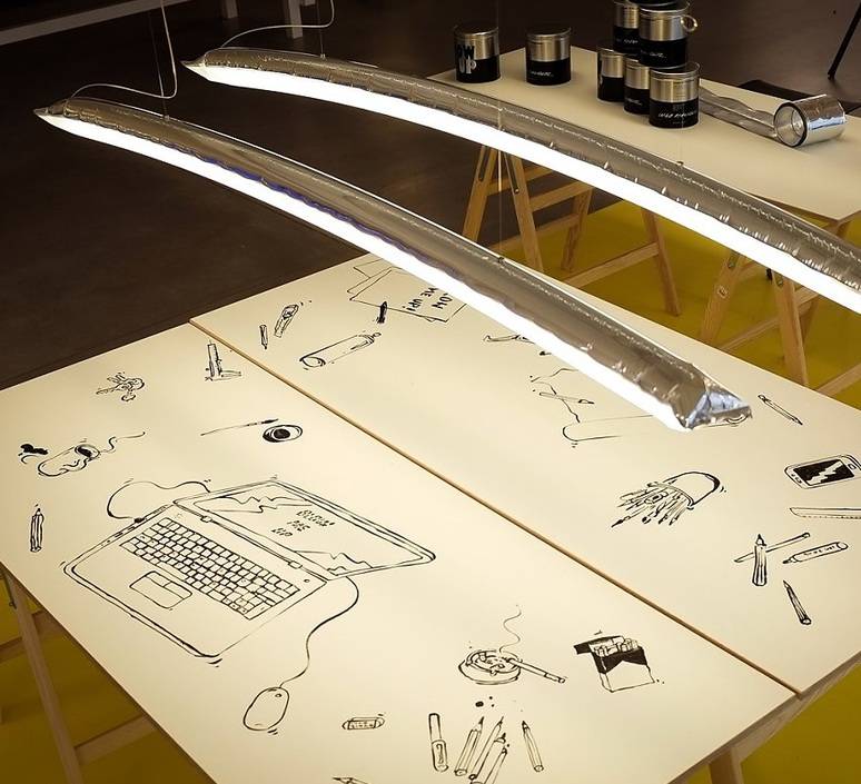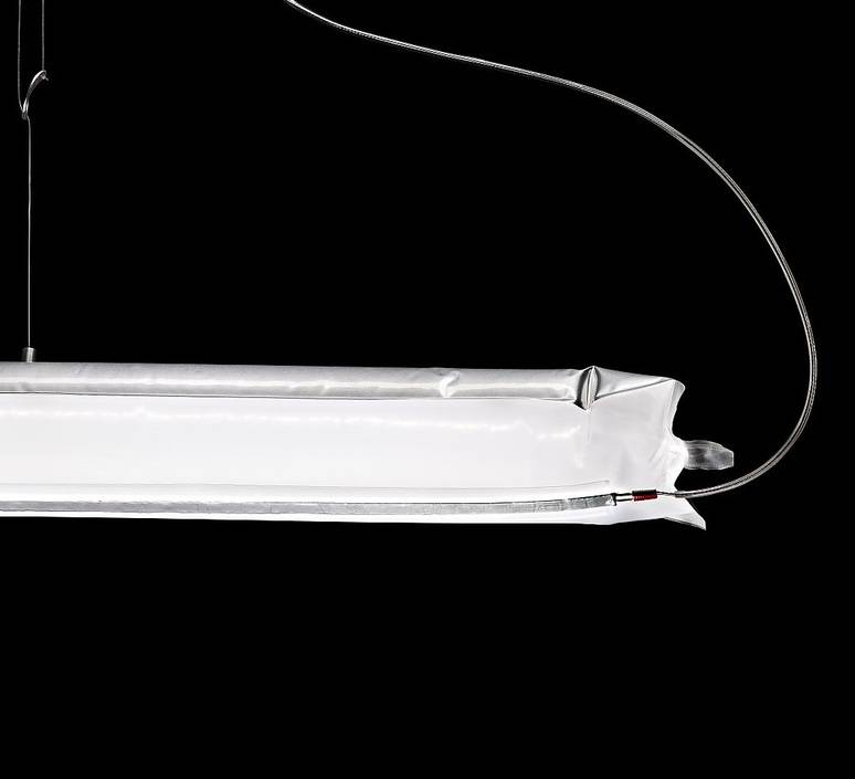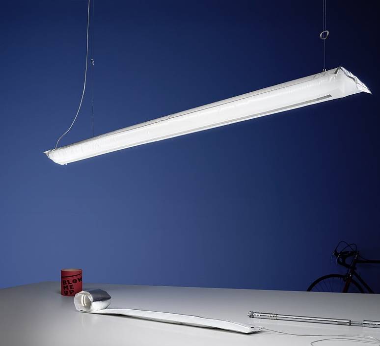 Ingo Maurer présente l'étonnant luminaire Blow me up. Ce luminaire est une grande barre lumineuse gonflable. Très originale et atypique, Blow me up est modulable. Accrochée à un mur, à un plafond ou poser sur une étagère, elle rayonne en apportant une touche fun à votre intérieur !