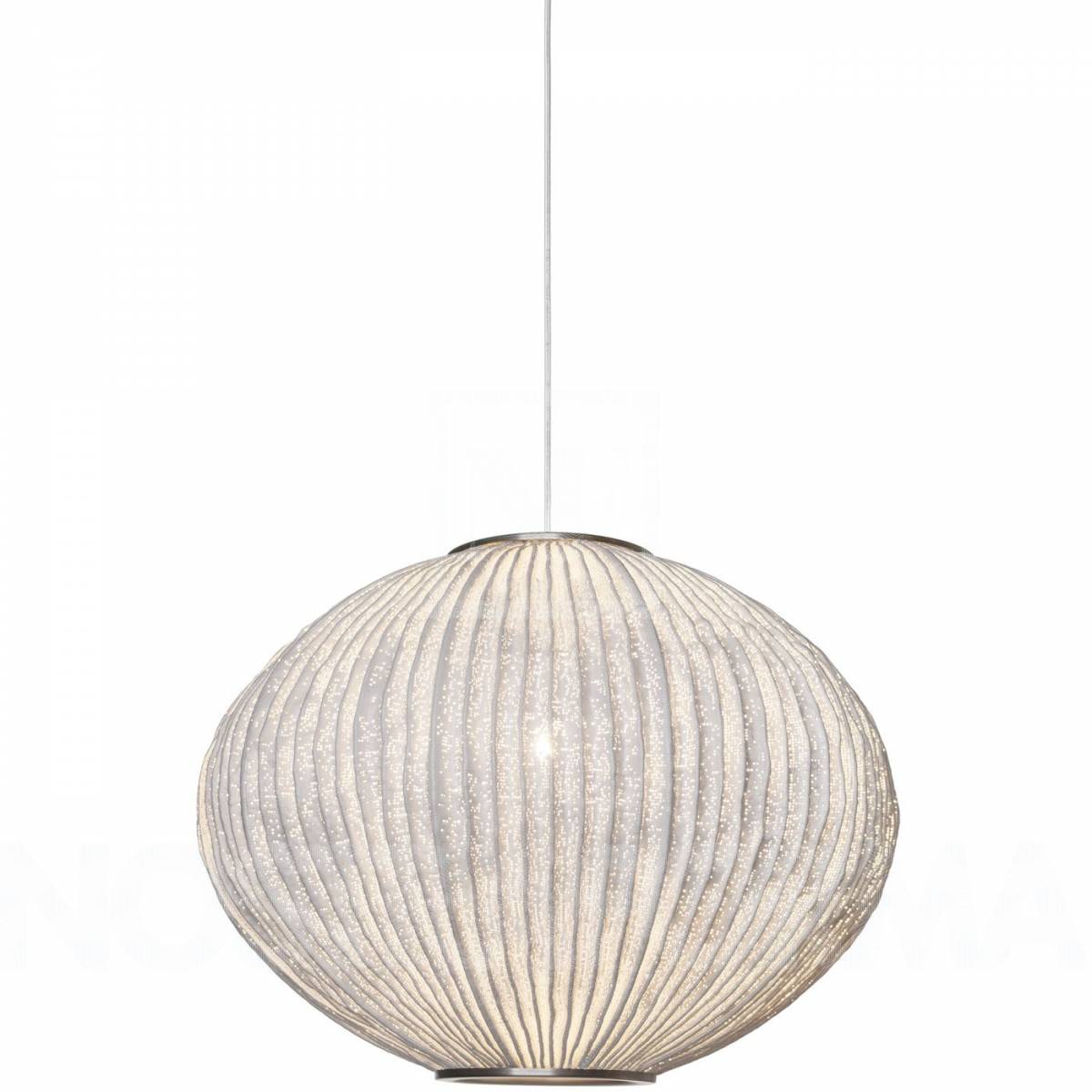 L'abat-jour de Coral Seaurchin est en tissage d'acier inoxydable laqué, faisant penser à un diffuseur de tissu pour ce qui est de l'apparence et de l'effet lumineux, mais en plus robuste. La forme organique et sphérique, légèrement aplatie aux plis verticaux reproduit le squelette d'un oursin et produit un effet harmonieux dans pratiquement tous les contextes. La lampe apporte une touche magique et le charme mystérieux des fonds marins à l'intérieur, tout particulièrement lorsque plusieurs luminaires de la collection Coral sont associés pour former un ensemble. Suspendue par un câble transparent, la lampe flotte librement et donne une lumière atmosphérique aux superbes effets.