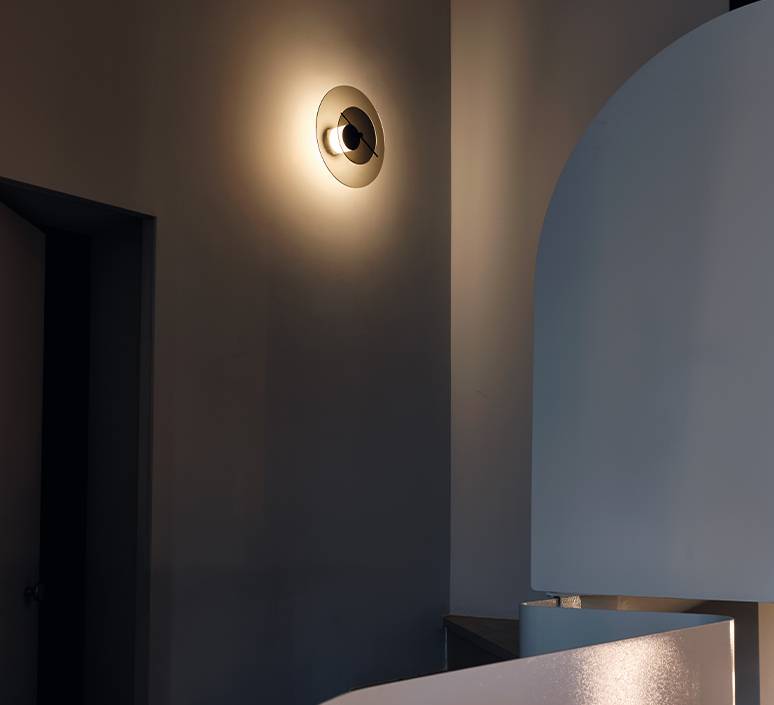 Le luminaire Delumina est composé d’une attache murale tubulaire, de deux cercles de verres de tailles différents et d’une baguette métallique permettant de noircir le verre extérieur. Envoutante et évolutive, l’applique Delumina suit chacun au grès de ses envies et de ses besoins, se plaçant aussi bien dans une pièce de vie, qu’une chambre ou une entrée.