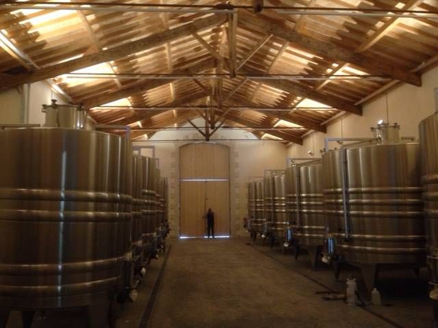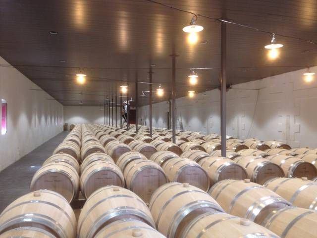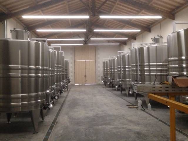 Réalisation d'éclairage dans le Cuvier Inox du domaine, illumination du chai à barriques, de la salle de dégustation, de la boutique et des chambres d'hôtes.