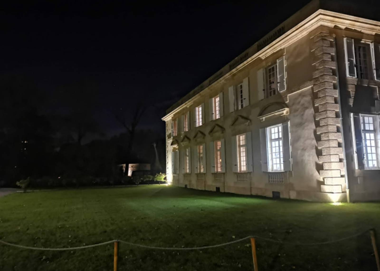 . Eclairage extérieur du bâtiment par appliques murales décoratives et encastrés de sol,
