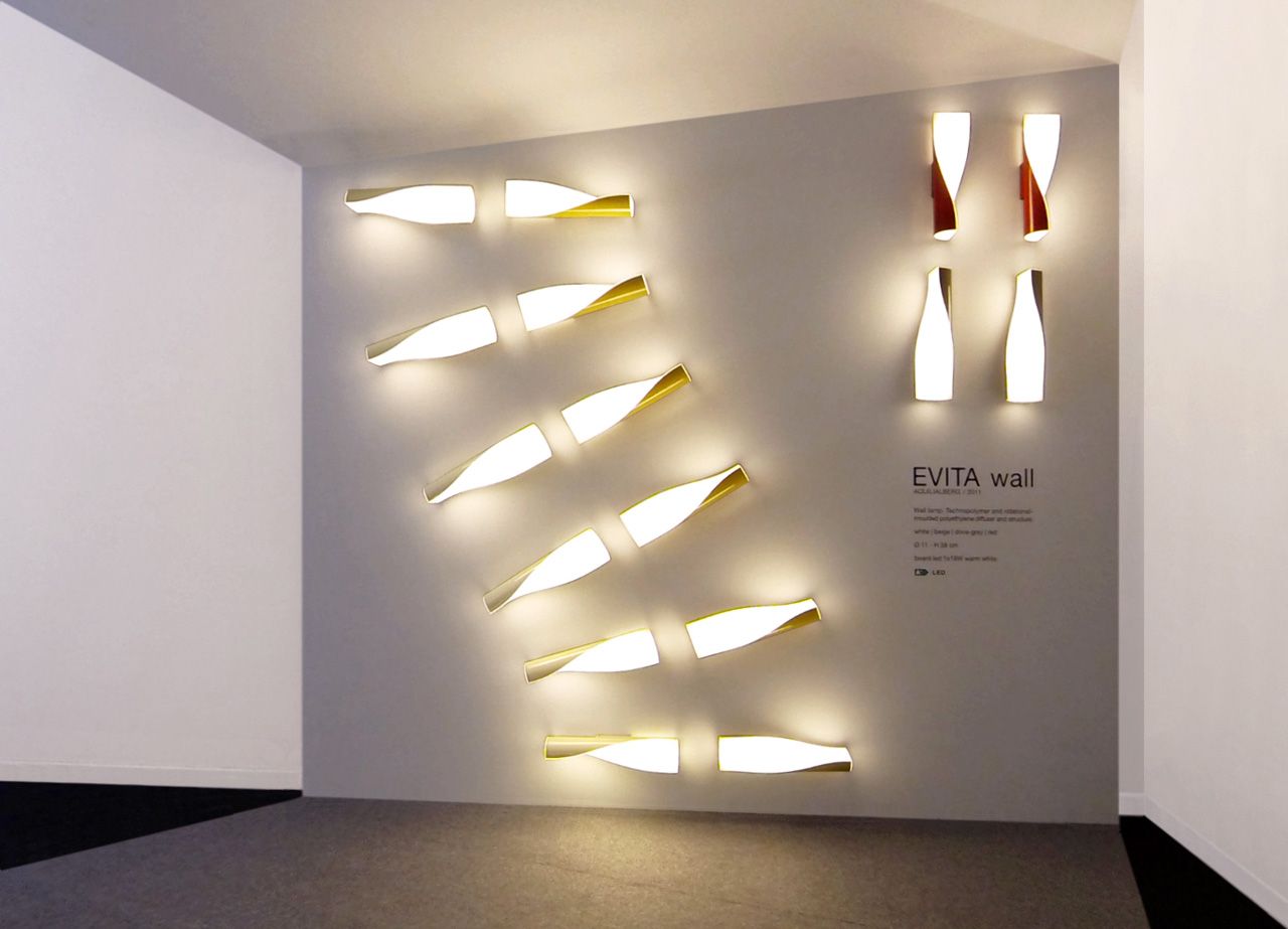 Cette applique au design très personnel est l'oeuvre du duo de l'agence Aquilialberg, Laura Aquili et Ergian Alberg, talentueux créateurs récompensés en 2008 d'un "New Creative & Innovatrice Company Award" à Milan. Parfaite illustration de leur travail, Evita associe la sensualité de ses courbes à une technologie moderne pour créer un objet élégant, efficace et intemporel.