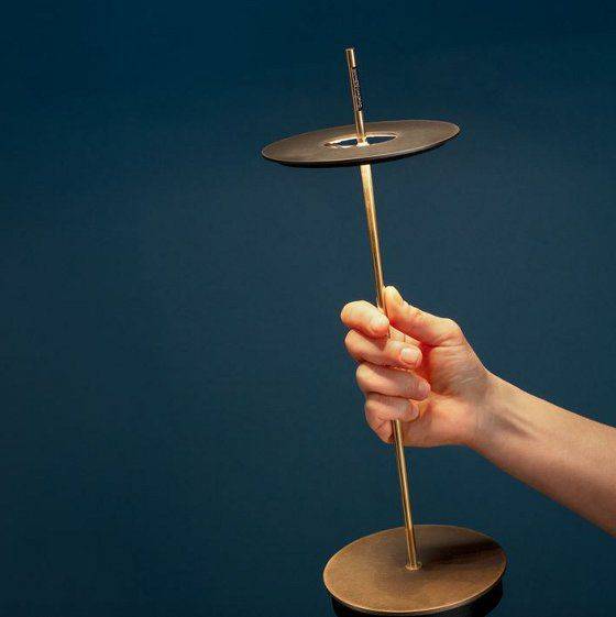 Grâce au fonctionnement sur batterie et à l’absence de câbles, la nouvelle Giulietta BE peut être « transportée » avec une extrême facilité dans n’importe quelle pièce. D’un simple toucher de la main, il est possible d’allumer la lampe Giulietta BE et d’obtenir trois intensités lumineuses différentes. Giulietta BE se compose d’une fine tige et d’un cercle qui gravite autour, apparemment sans aucun support. La présence du cercle qui cache la source lumineuse est un élément distinctif de cette lampe, qui fait partie de la collection « Giulietta ».