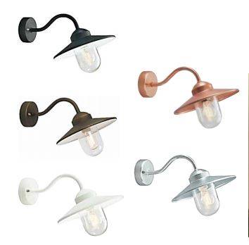 Applique extérieure KARLSTAD en galvanisé brut, noir, blanc, rouille, ou cuivre. Produit nordique au design reprenant le col de cygne d'autrefois. Très bon rapport qualité prix pour ce luminaire, qui convient très bien dans les zones côtières dans sa version galva brut donc le patinage dans le temps assurera un bon vieillissement naturel.