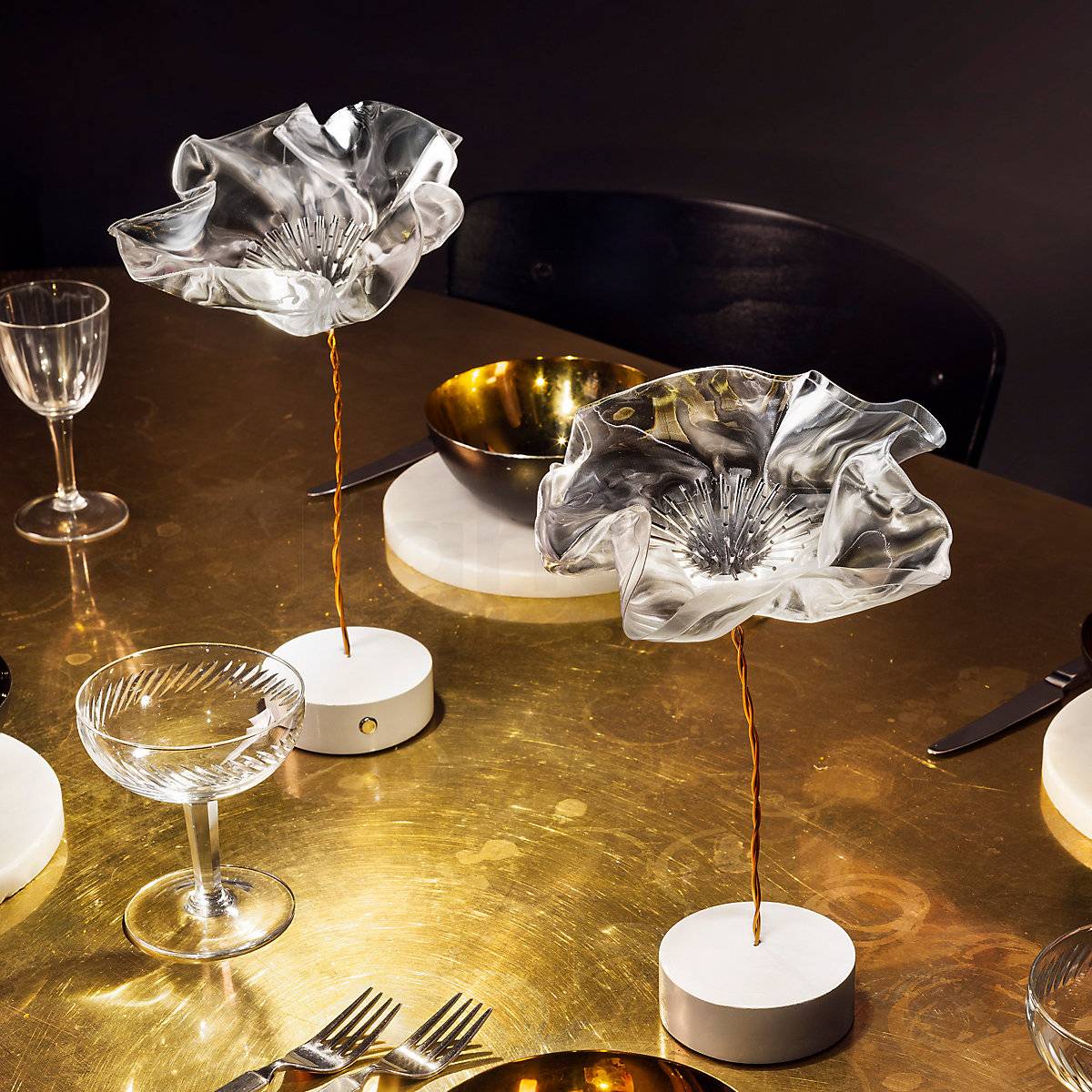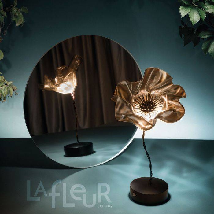 base est magnétique et fournie avec un disque métallique qui peut être dissimulé sous la nappe ou vissé au mur pour transformer rapidement Lafleur en une applique.