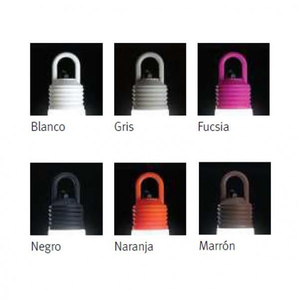 Corps en polyethylène, 2 tailles et culots de 4 coloris différents diffuseur blanc, Douille E27 pour ampoule LED, livré avec câble de 5m.