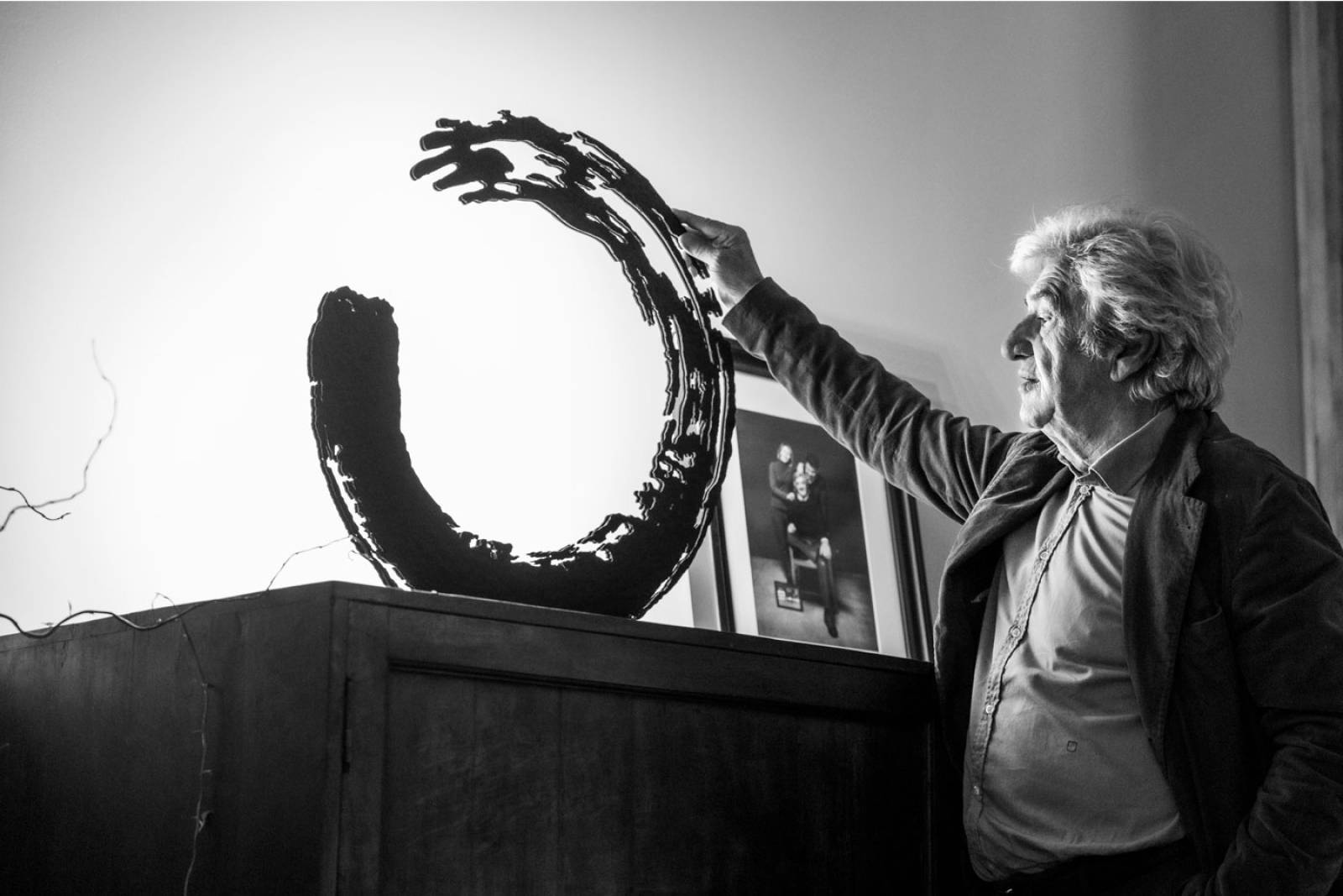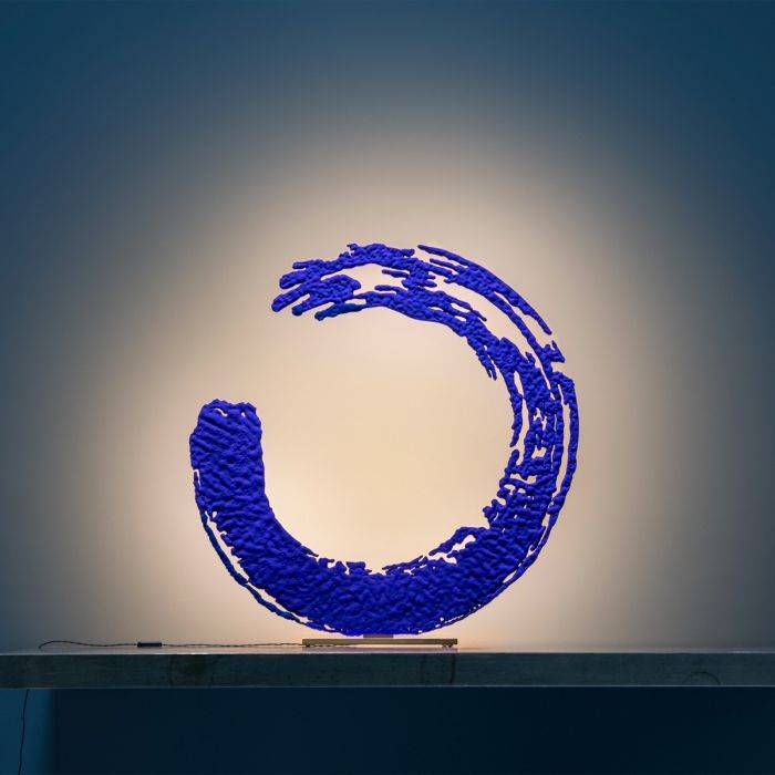 "J’ai eu la chance de passer une période de ma vie au Japon, où j’eus l’opportunité de participer à des leçons de calligraphie. Ce fut une découverte totale. Aujourd’hui encore, je continue à pratiquer cet art, en essayant de trouver l’essence de ces gestes lents et précis. L’Ensō, le symbole du cercle, m’a tout particulièrement fasciné pour ce qu’il représente : l’illumination, la plénitude, le tout, le rien. C’est alors qu’il m’a paru tout naturel de chercher à donner un aspect tridimensionnel à ce geste”. Enzo Catellani