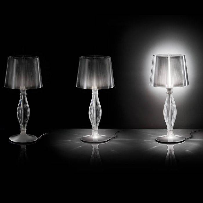 Chef-d’oeuvre de la collection Liza, elle est la lampe de table emblématique de style baroque, un design à la saveur traditionnelle qui utilise des technopolymères par Slamp. Assortie d’un système de double éclairage – LED de courtoisie pour rassurer pendant la nuit et source lumineuse au niveau du chapeau – Liza se transforme chaque fois que vous l’allumez et projette une combinaison d’ombres et de lumières.