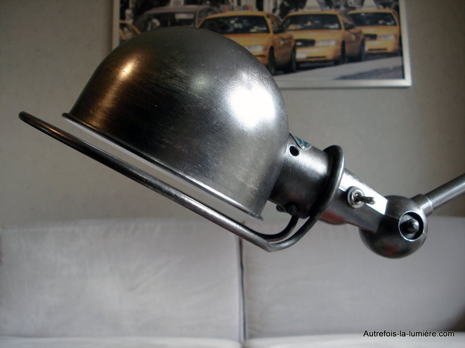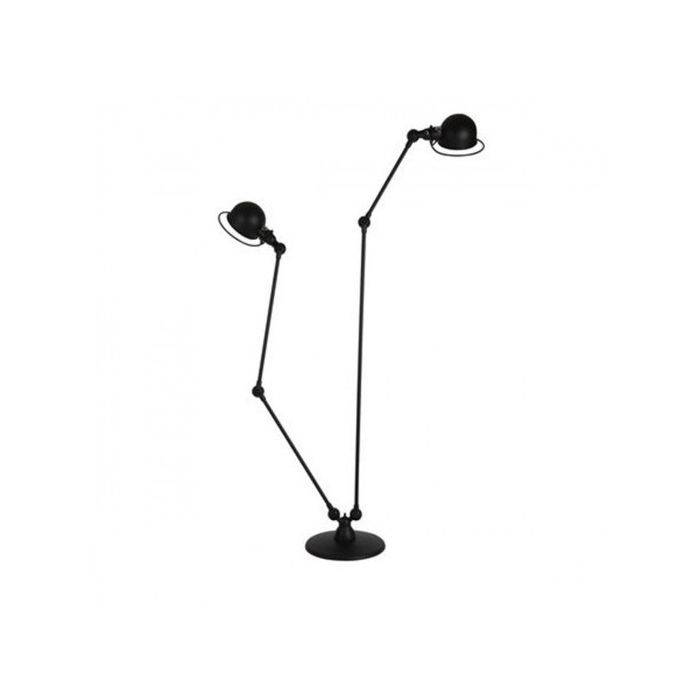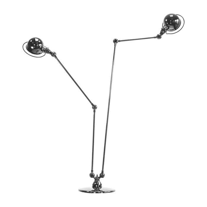 Ce lampadaire Jieldé au design original est composée de deux lampes sur un même socle rond de 33cm. Elle peut être considérée comme un lampadaire avec liseuse. Ce lampadaire Loft possède deux pieds et donc deux sources lumineuses indépendantes (2 interrupteurs séparés). Chaque pied est constitué de 2 bras articulés (hauteur max du pied 1 : H 120 cm / hauteur max. du pied 2 : H 160 cm). Les abat-jour orientables (Ø 15 cm) et les bras articulés permettent de diriger la lumière avec précision. Un ingénieux système de contrepoids confère à la lampe une grande stabilité. Le design intemporel de cette lampe fera sensation dans toutes les pièces de la maison, comme au bureau.