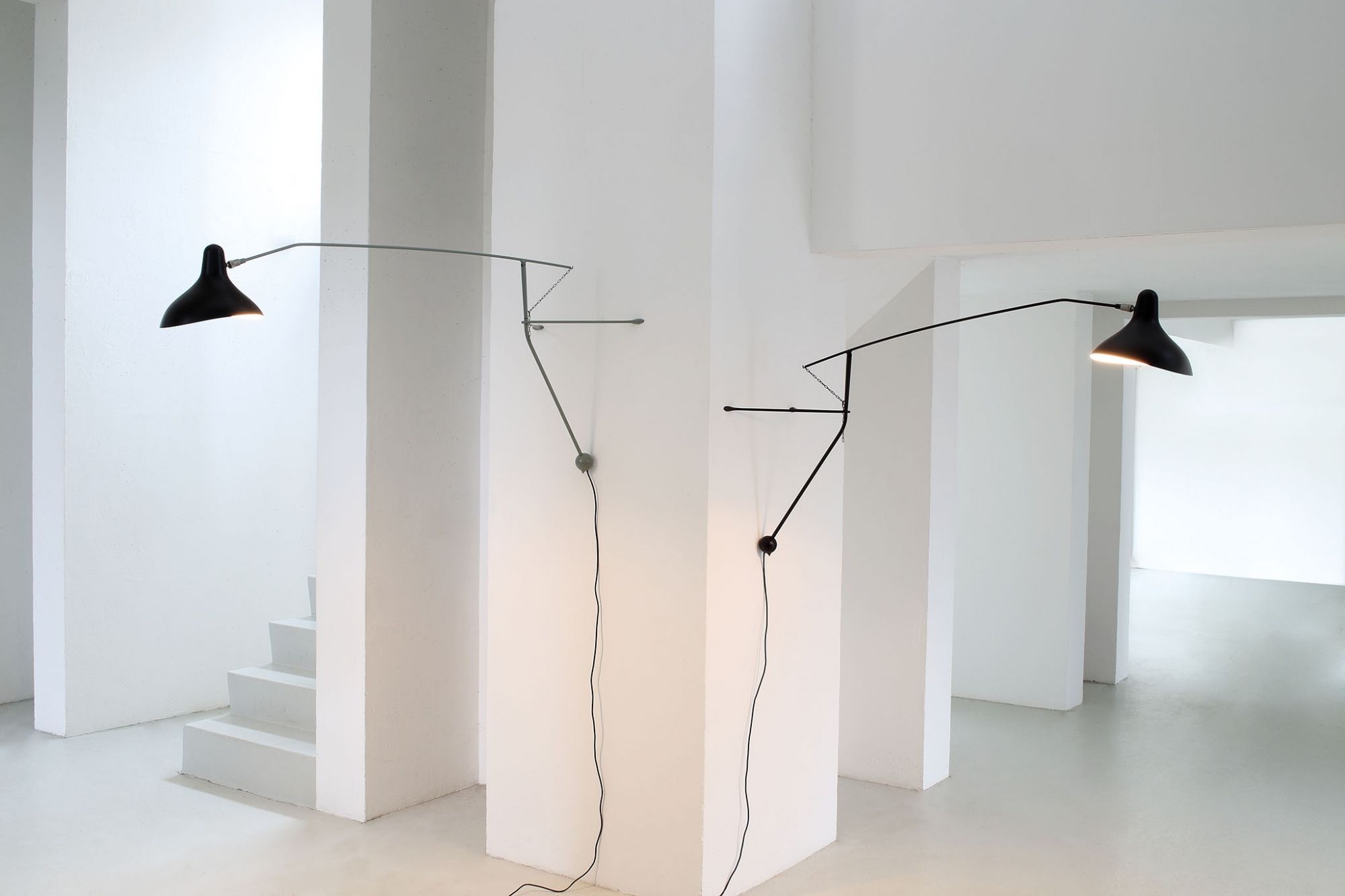 L'applique murale Mantis BS2 de couleur noire, joue sur la tension entre l'équilibre et le déséquilibre et défie la loi de la pesanteur.