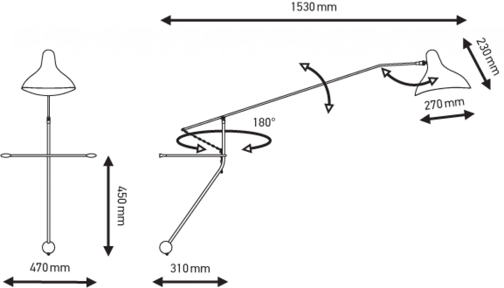 Ses dimensions sont de 153cm de longueur et de 68cm de hauteur. L'ampoule LED E14 n'est pas fournie, nous préconisons une source lumineuse de 11W maximum.