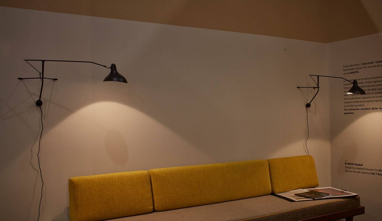 L'applique murale Mantis BS2 MINI, une déclinaison de son ainé, joue sur la tension entre l'équilibre et le déséquilibre et défie la loi de la pesanteur. Pour cette applique, il s'est inspiré de la mante religieuse. D'une rare élégance, Mantis BS2 est à la fois discrète et présente. Elle occupe l'espace sans s'imposer. Elle est fabriquée en acier et aluminium, et son bras rotatif à 180° permet d'orienter la lumière avec précision sur la zone souhaitée. L'abat-jour est aussi orientable.