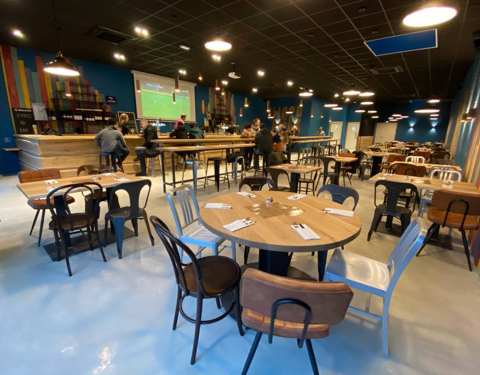 Mise en lumière de la Brasserie WOOD BLOCK à Mérignac by MEGALUX 33