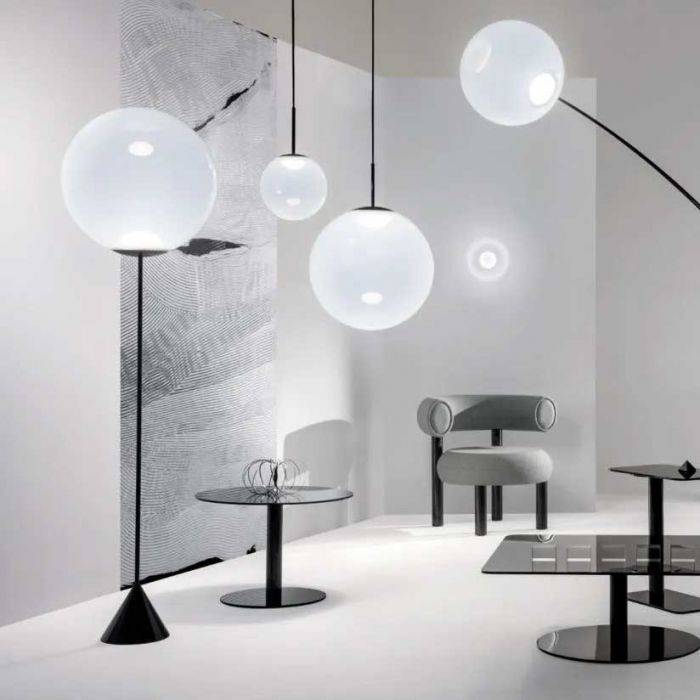 En collaboration avec ses ingérieurs partenaires d'Allemagne, Le fabriquant Tom Dixon a conçu sa propre recette de polycarbonate opalescent, produisant un globe plaisant et éthéré. Ils ont décidé de supprimer la classique ampoule pendante pour la remplacer par un tout nouveau disque LED, qui en fait un luminaire extrêmement puissant.