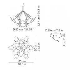 Son diamètre maximal est d’environ 80cm et sa hauteur de 52,7cm. L’éclairage est assuré par LED 12 x 4,5W 2700K 6000LM