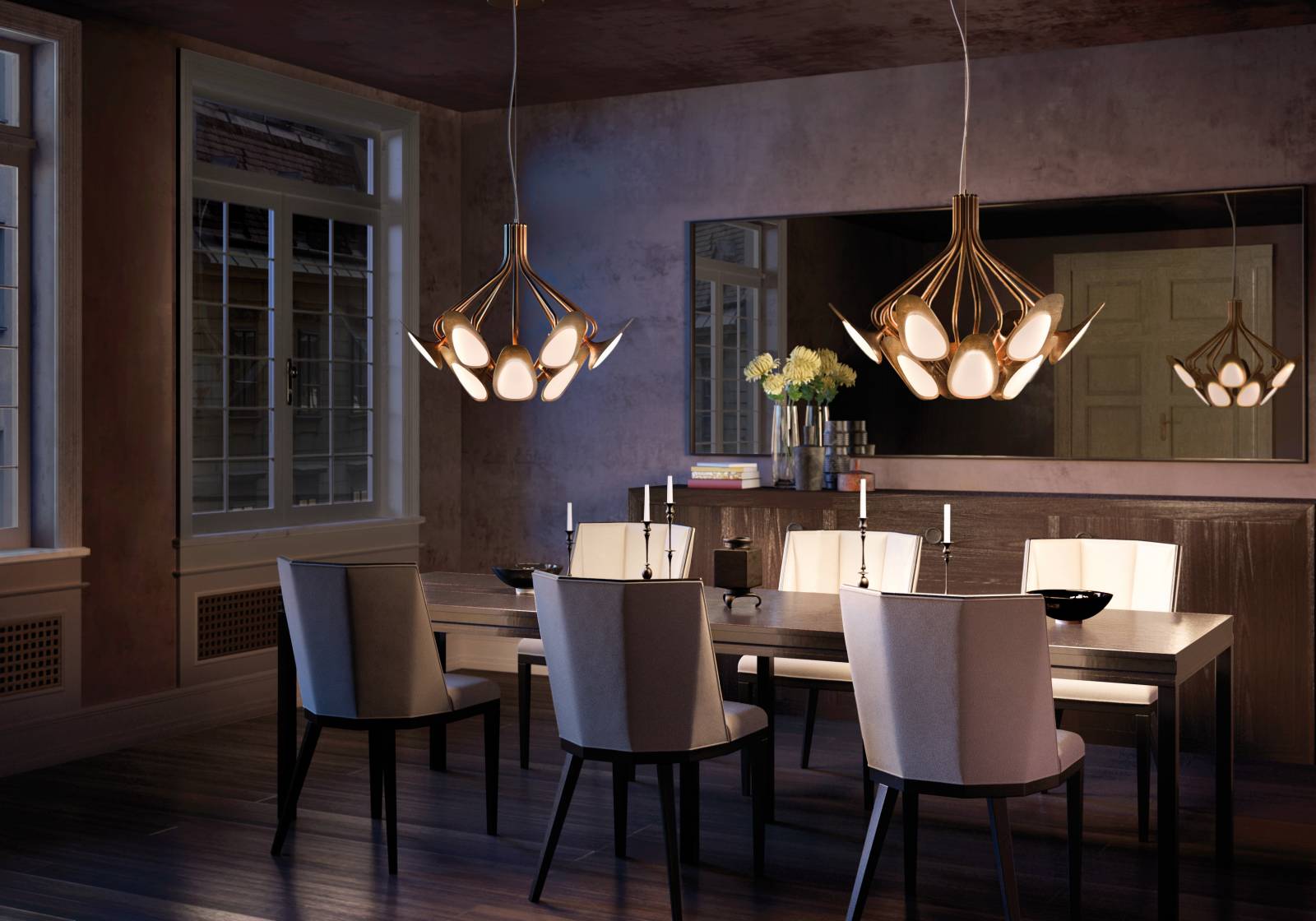 Ce lustre au style est très élégant et épuré. Il assure une diffusion de la lumière très agréable et optimale. Les faisceaux lumineux apporte un éclairage naturellement chaud grâce aux reflets dorés du laiton. Un luminaire parfait pour créer une ambiance chaleureuse dans tous les intérieurs.