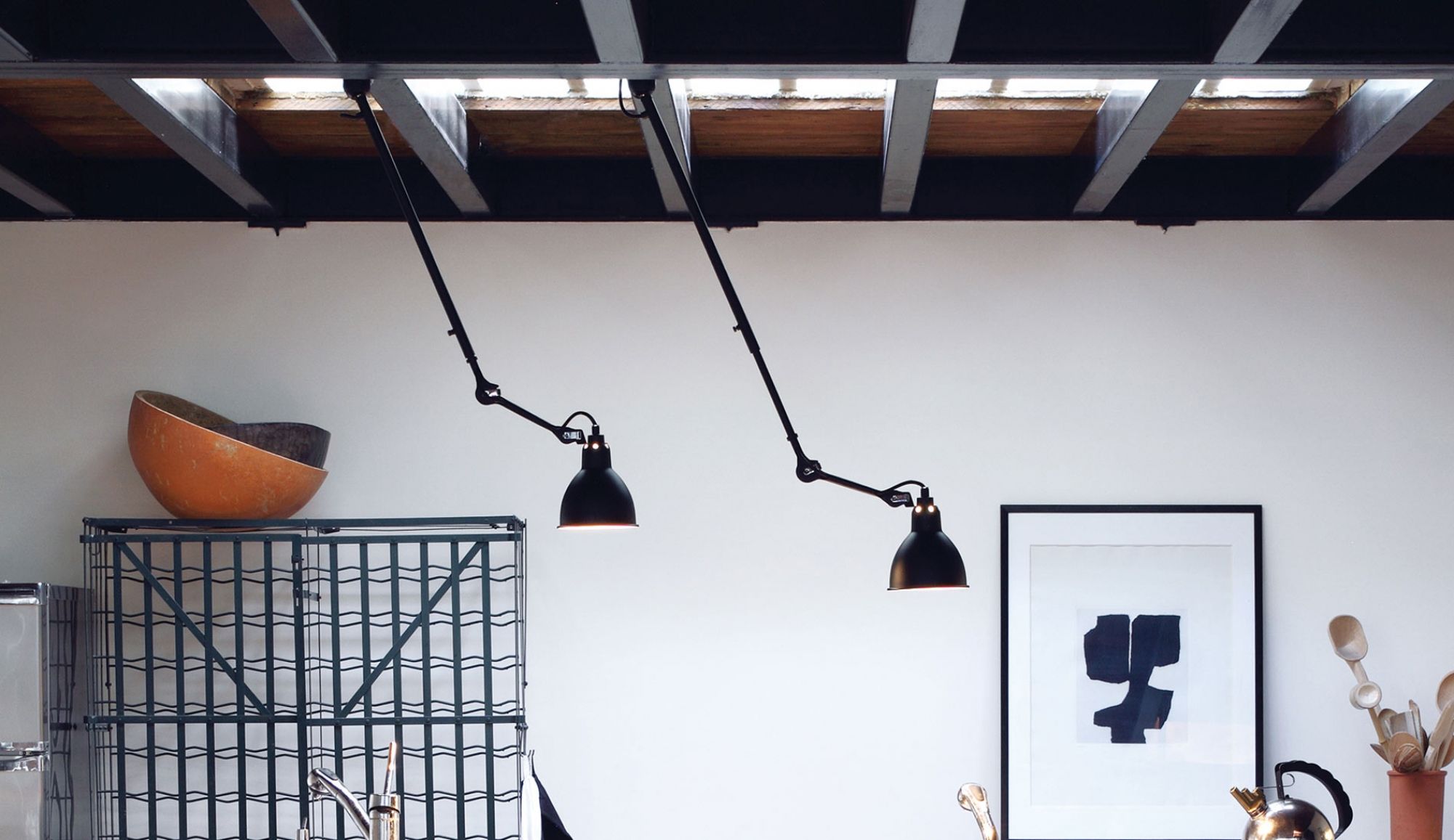 Composé d'un bras en acier, et d'un abat-jour en aluminium ce plafonnier intemporel rappelle à merveille le style industriel.