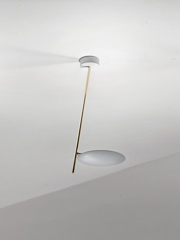 Lederam représente la rigueur du geste fait pour tracer une ligne, tandis que les disques aux couleurs chaudes et douces renferment un module LED ultra-plat, qui permet de créer des lampes minces et des formes suspendues aux lignes courbes et sinueuses.