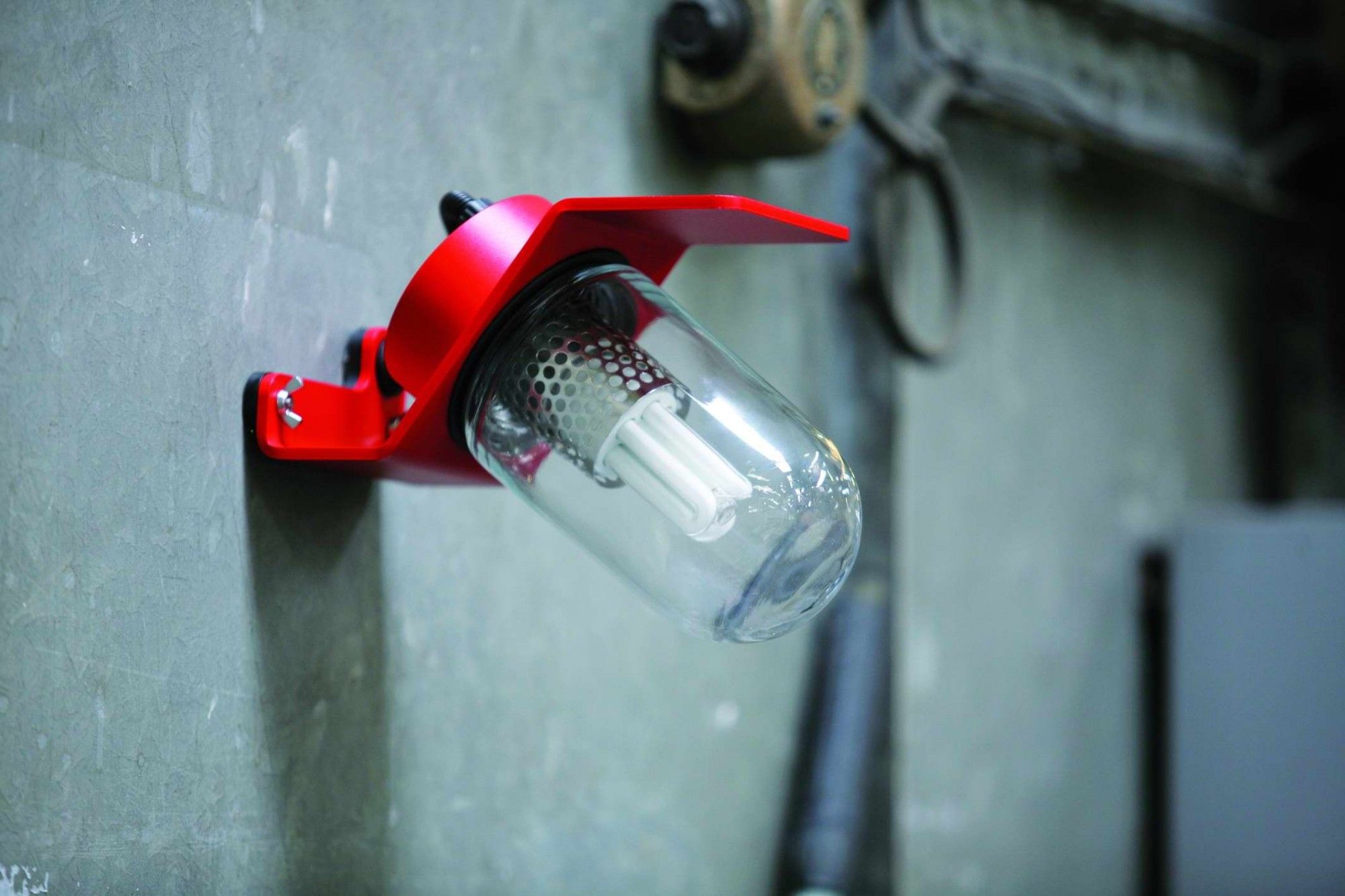 Sherlock est une applique design pour extérieur de Roger Pradier. Cette applique mélange divers matériaux de recyclage comme crépine de ventilation, papillon de serrage ou bien encore ouies d'aération.