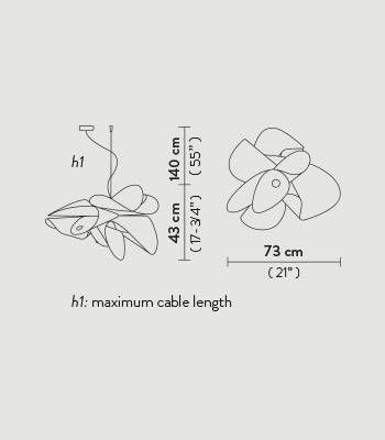 En parfait équilibre sur des formes asymétriques, ce luminaire est disponible en deux tailles.