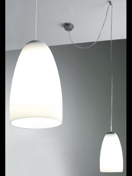Suspension en verre soufflé satiné blanc. Patère en métal verni. Livrée avec kit de déport.
