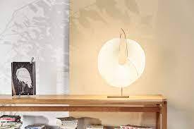 L’arc en papier posé sur un socle en métal est tendu presque de façon circulaire à de fins câbles métalliques et se déploie vers le haut. L’expression harmonieuse du modèle et sa lumière extrêmement agréable en font la source de lumière idéale pour des pièces dans lesquelles on souhaite se relaxer. Dans une chambre, un salon ou dans une entrée sur une console.